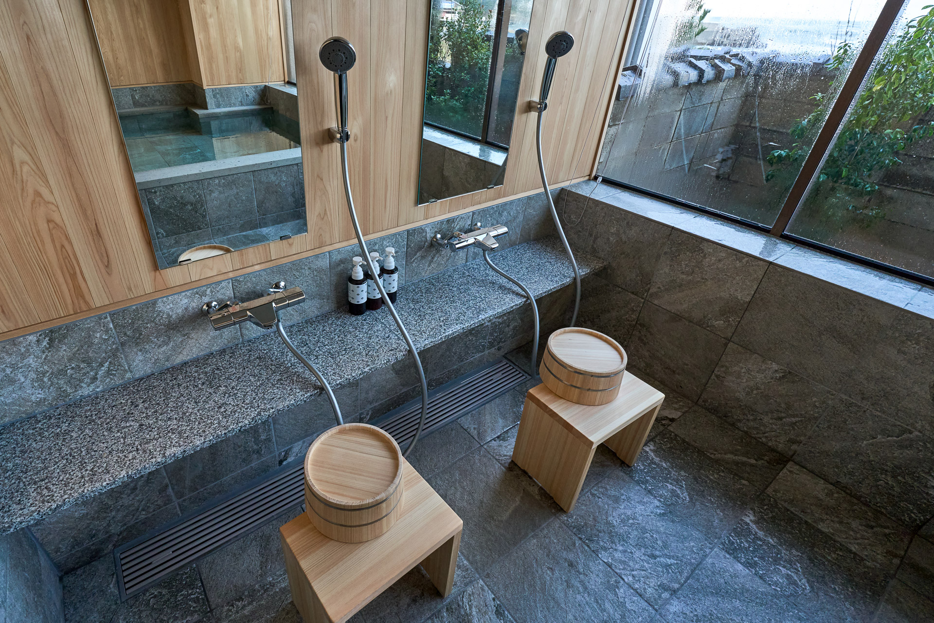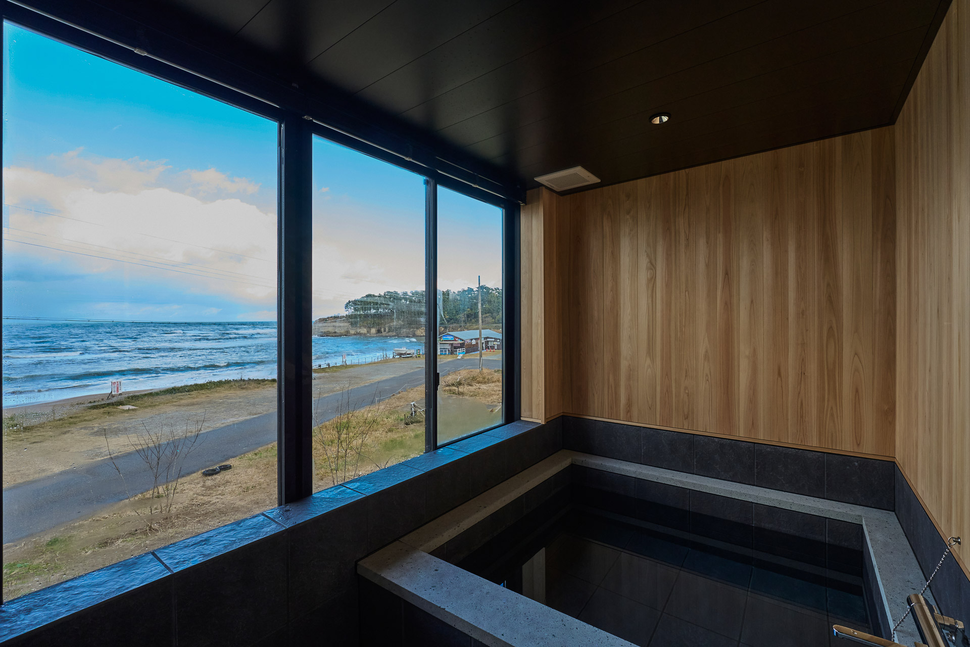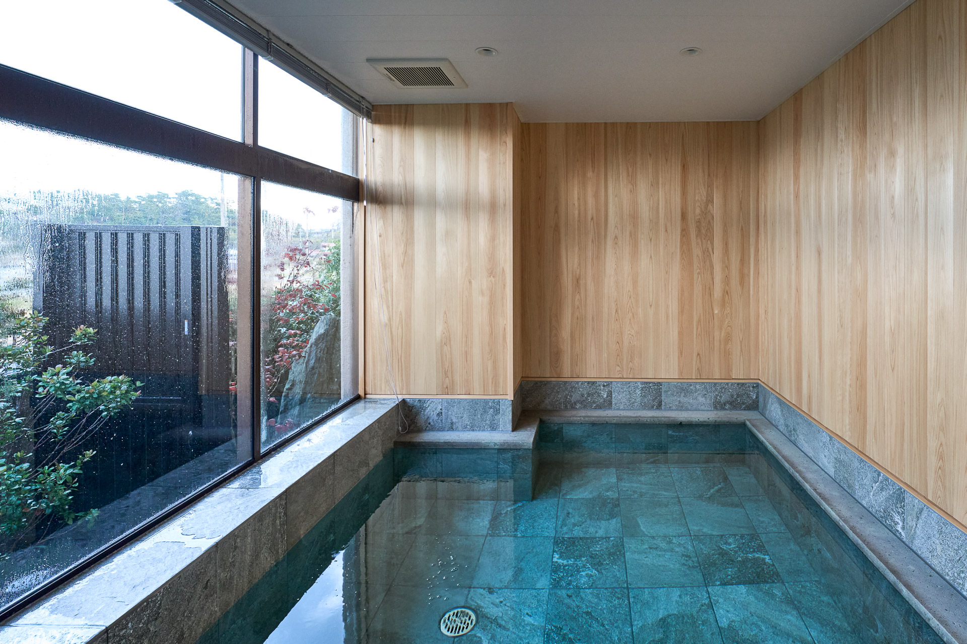 岩窟の中のような安らかな空間の「艫の湯(とものゆ)」と、木の香りが漂う「舷の湯(げんのゆ)」、日本海のように表情の違う2つのタイプです。