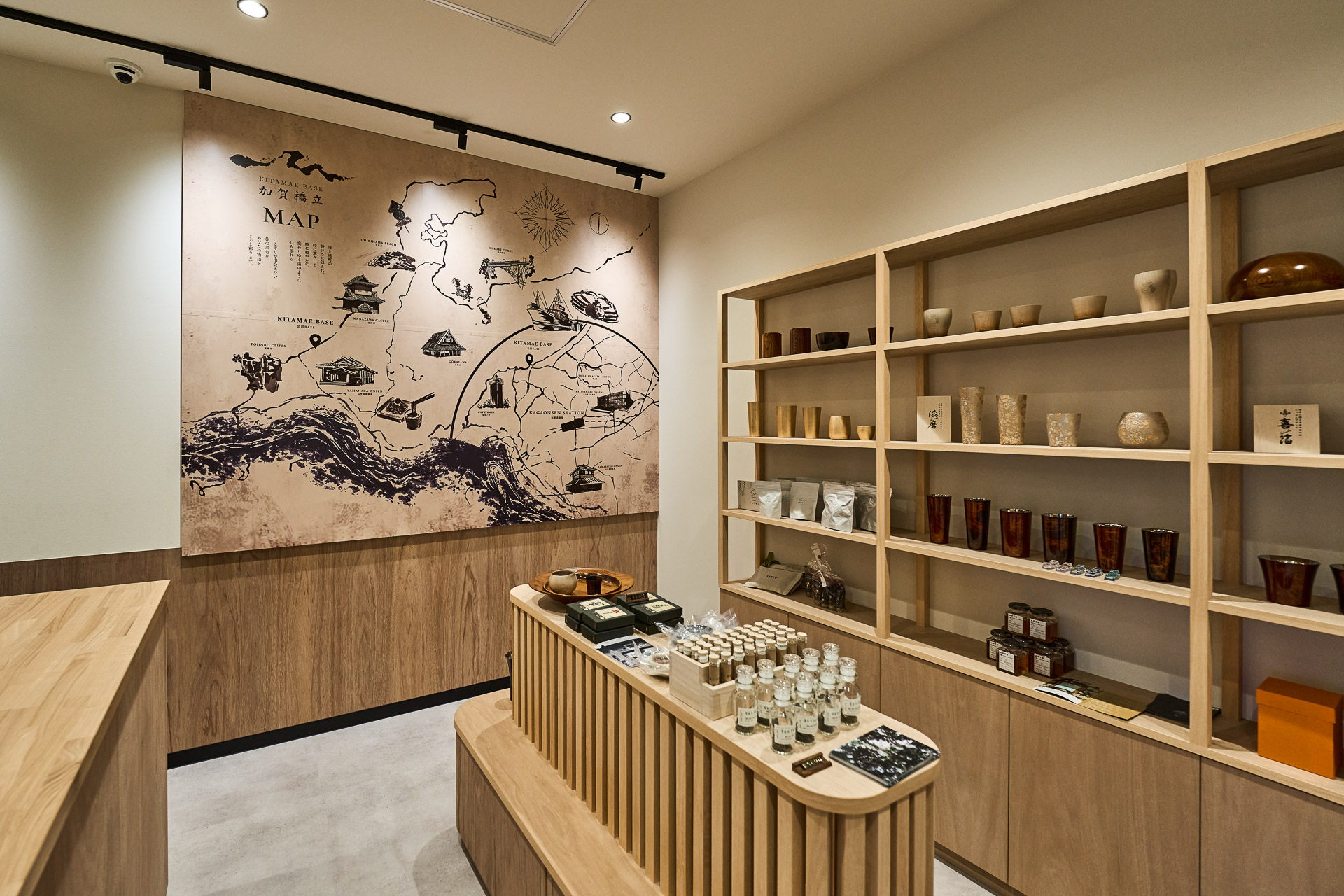土産物を販売するショップ「寄船処」は木目でナチュラルな設え。