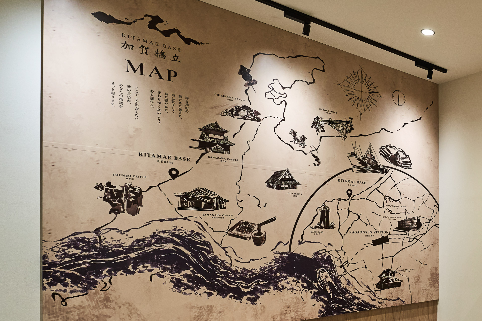 壁面にはMAPを設置し、回遊性を持たせたショップは入りやすく、加賀橋立の観光の参考にもなります。
