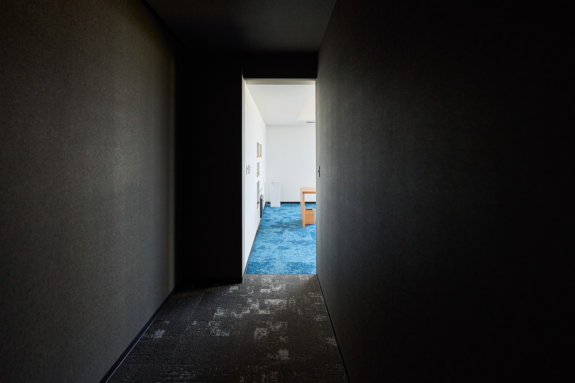 海や砂浜をイメージさせる廊下の先にあるスタンダードルーム。