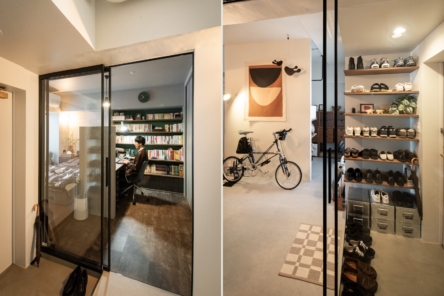 ご主人が希望したのは、「お気に入りの自転車を眺めながら仕事ができる空間」。