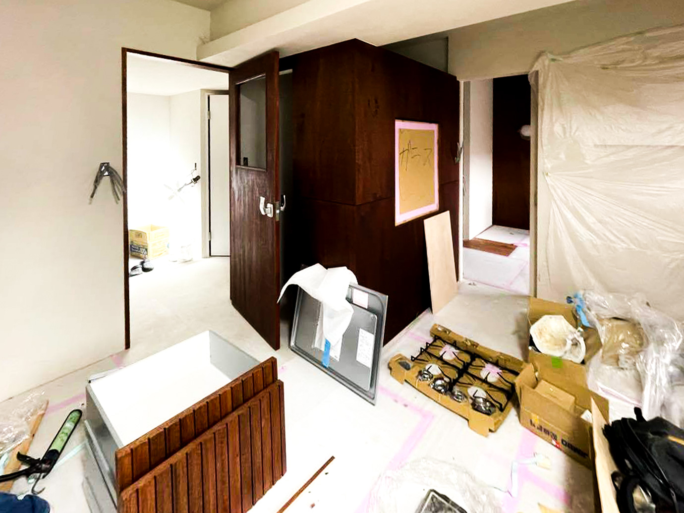大工工事が進み、ボードが貼られました◎〰〰〰エイトデザイン名古屋・東京オフィスでは一緒に働いてくれるディレクターを募集中!経験者大歓迎!!(ゼネコン・…