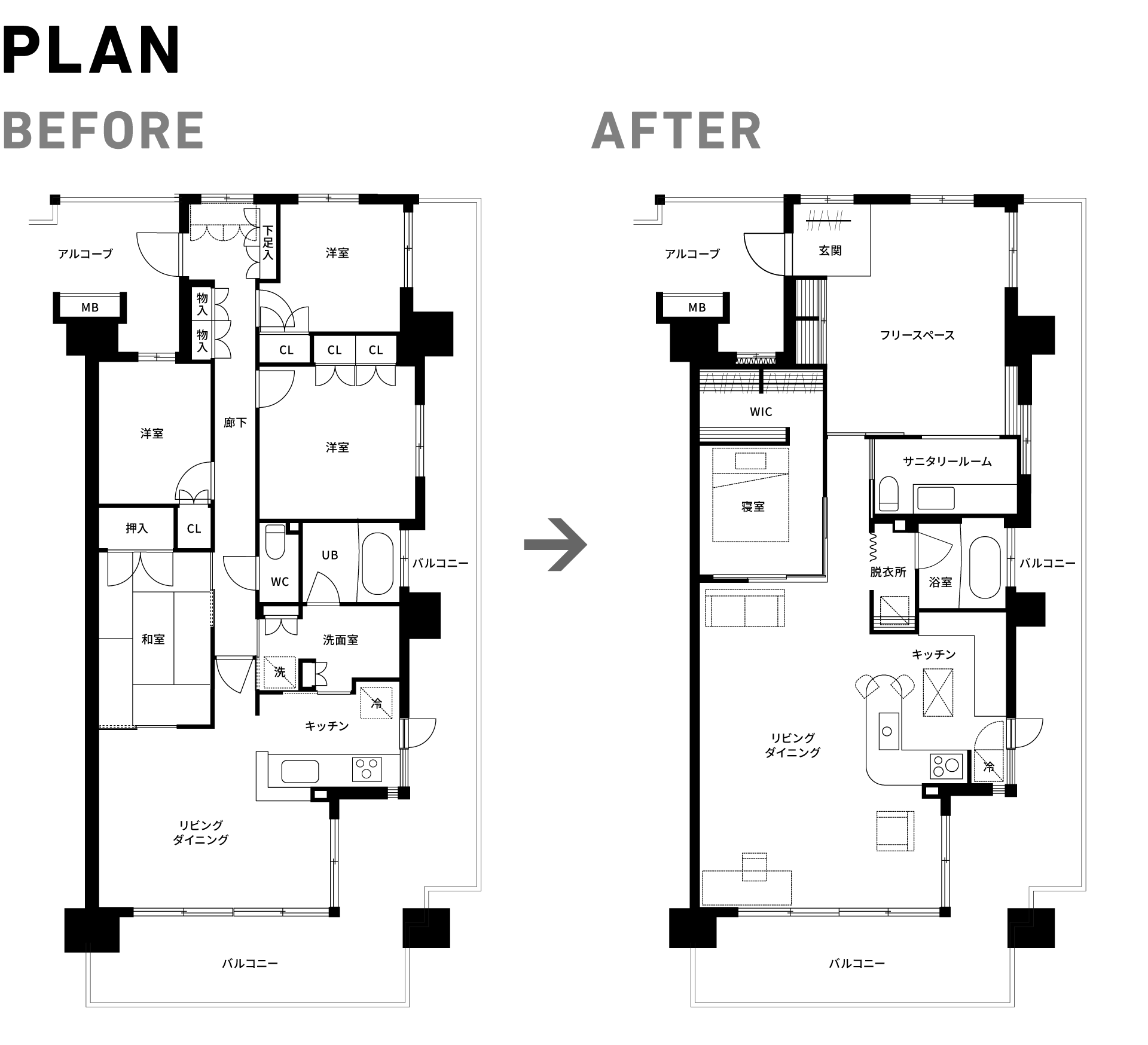 可変性を持たせたリノベーション事例です。