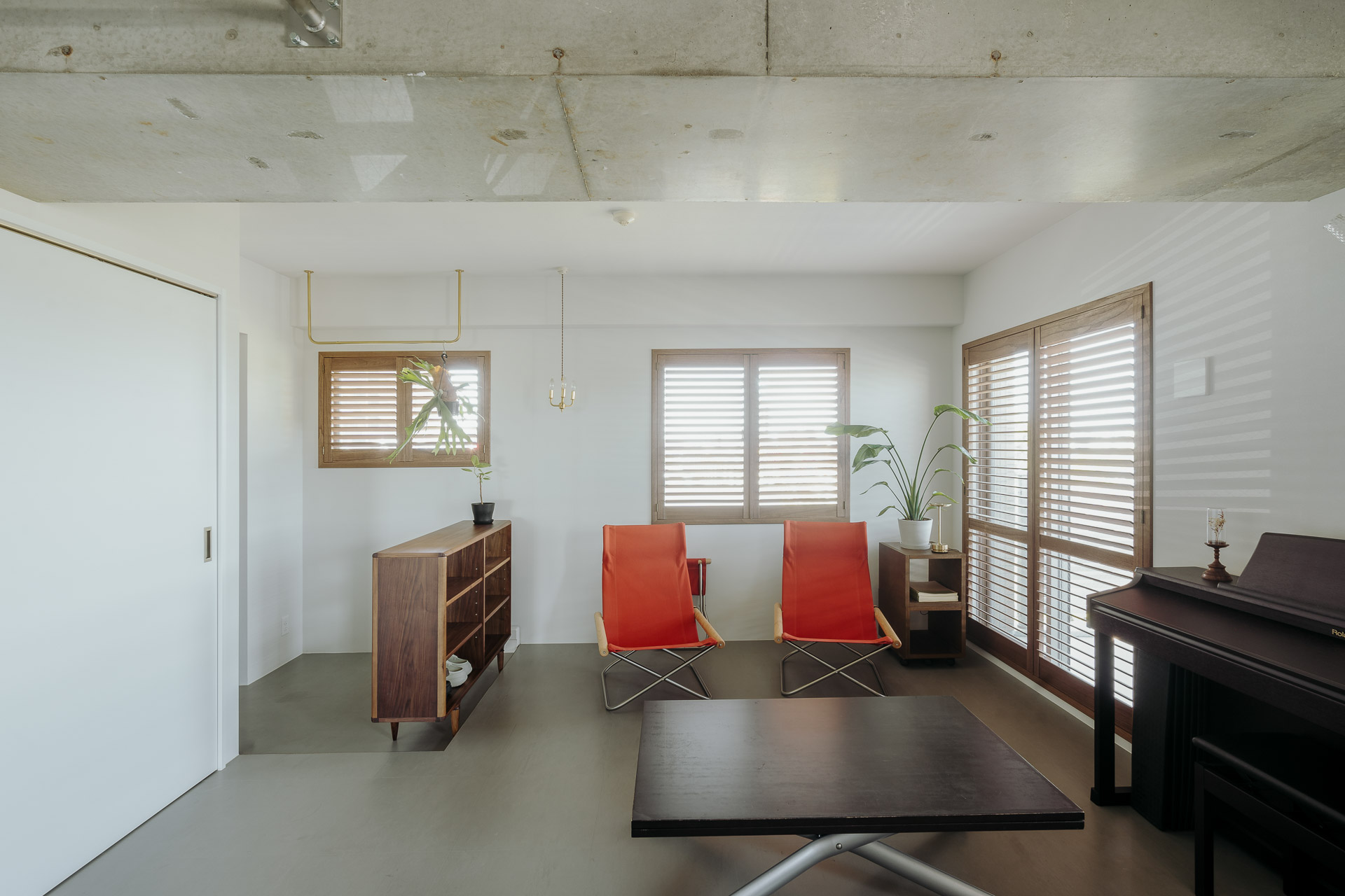 カーテン代わりに取り付けたウッドシャッターは、雰囲気良く、光や風をコントロールすることが出来ます。
