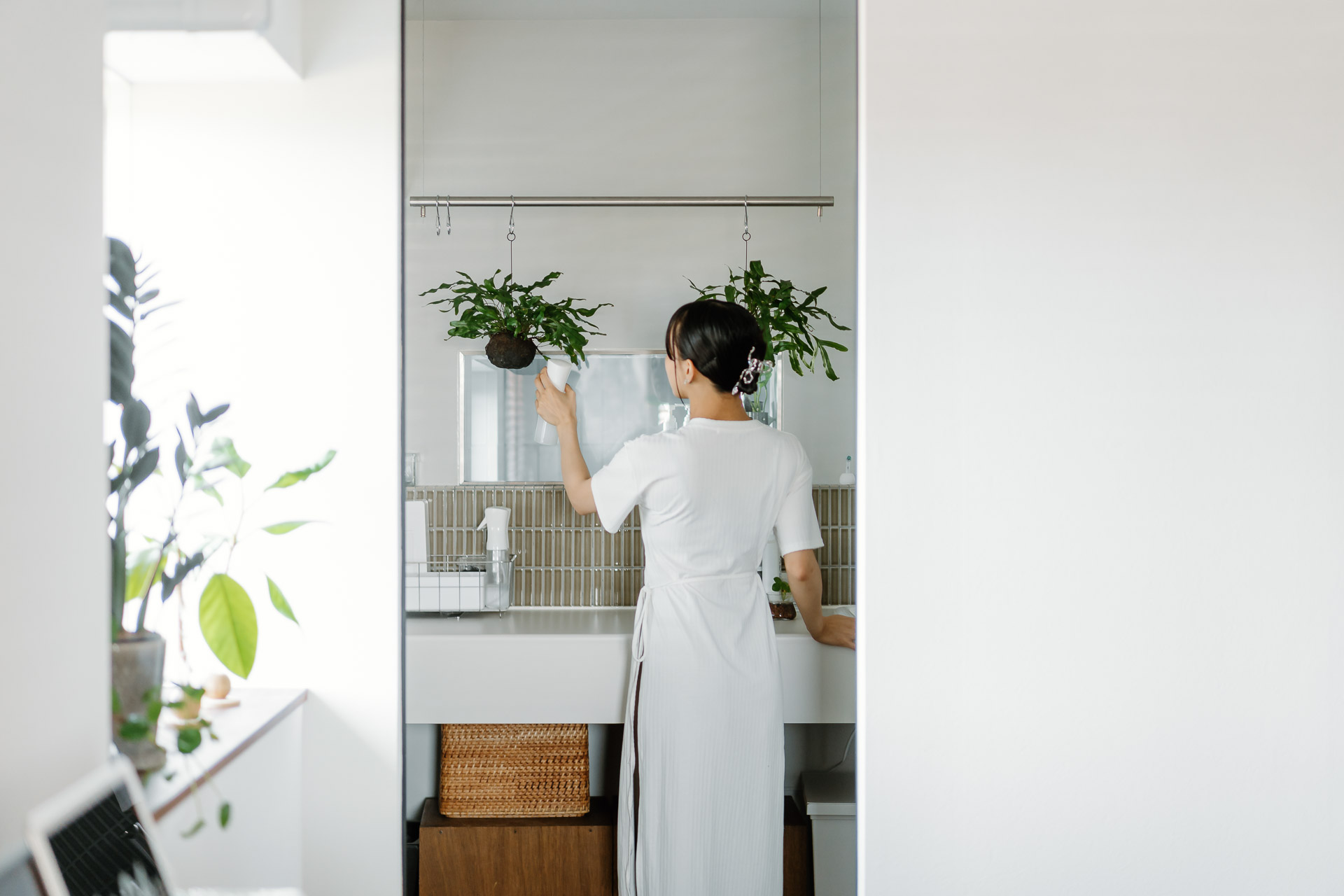 ニッチからは、サニタリールームの観葉植物を眺められます。