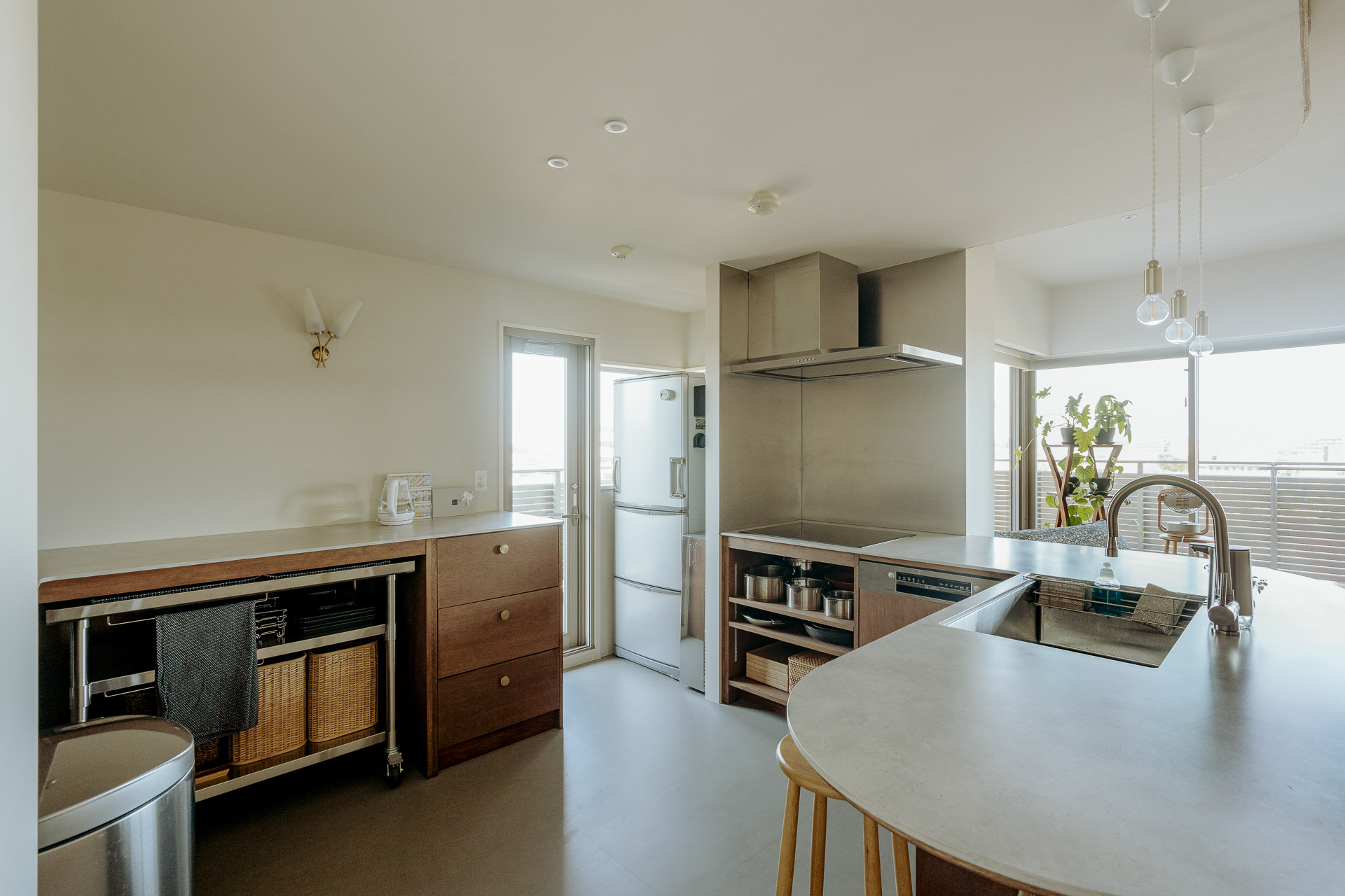 来客時やキッチンの使い方に合わせて出し入れできる、嬉しい仕様。