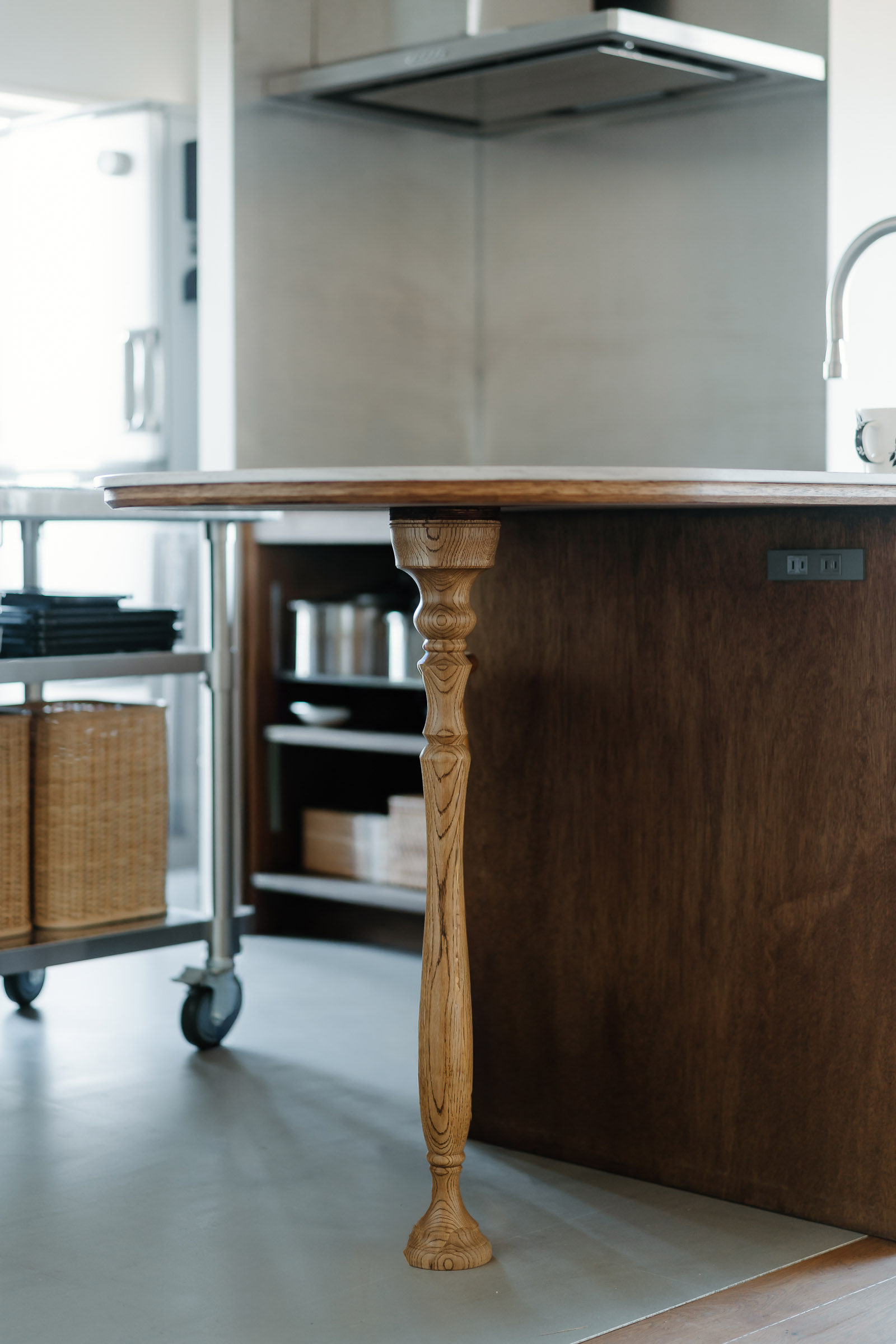 カウンターの脚は、オリジナルで造作したアンティークデザイン。