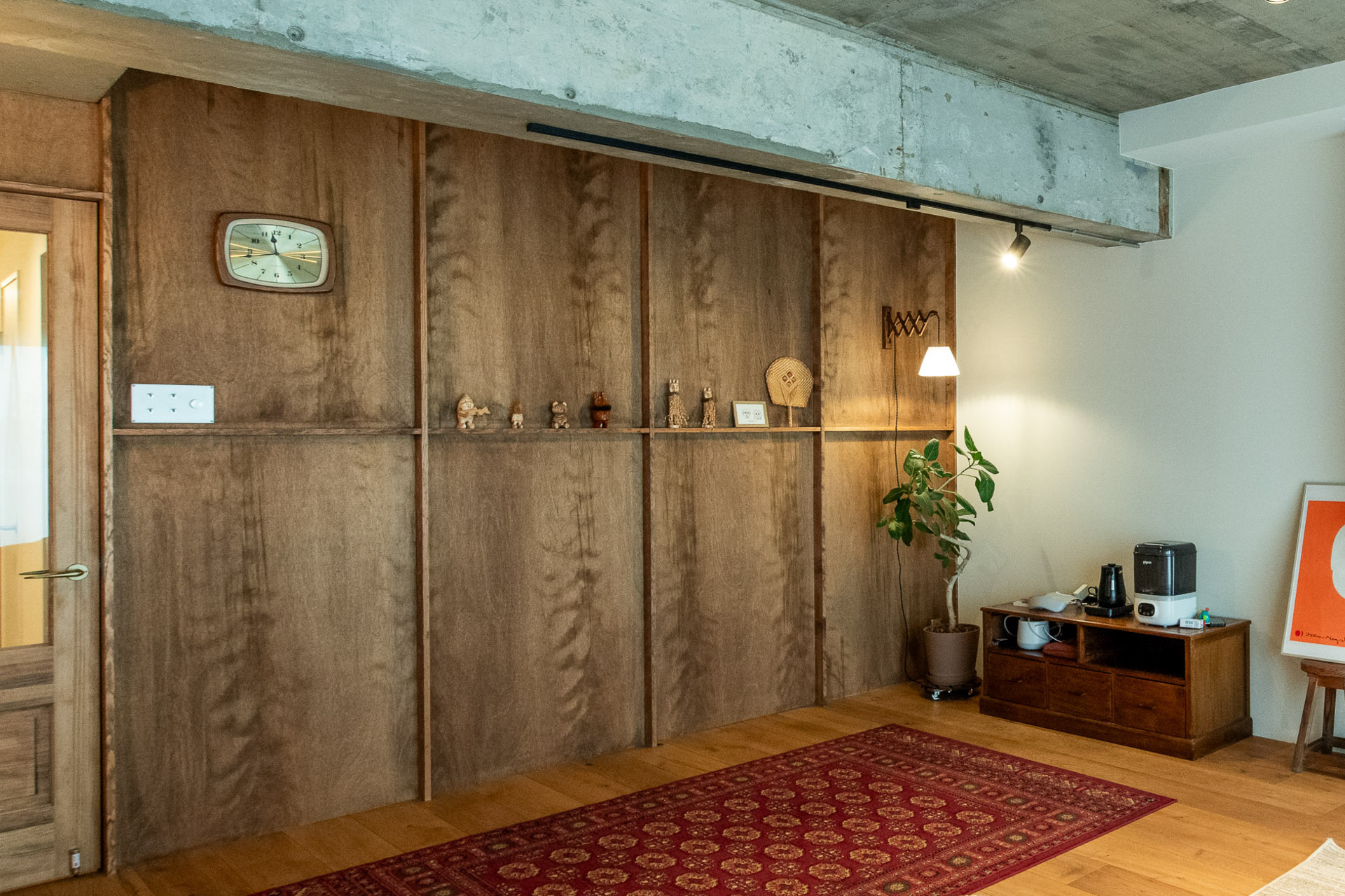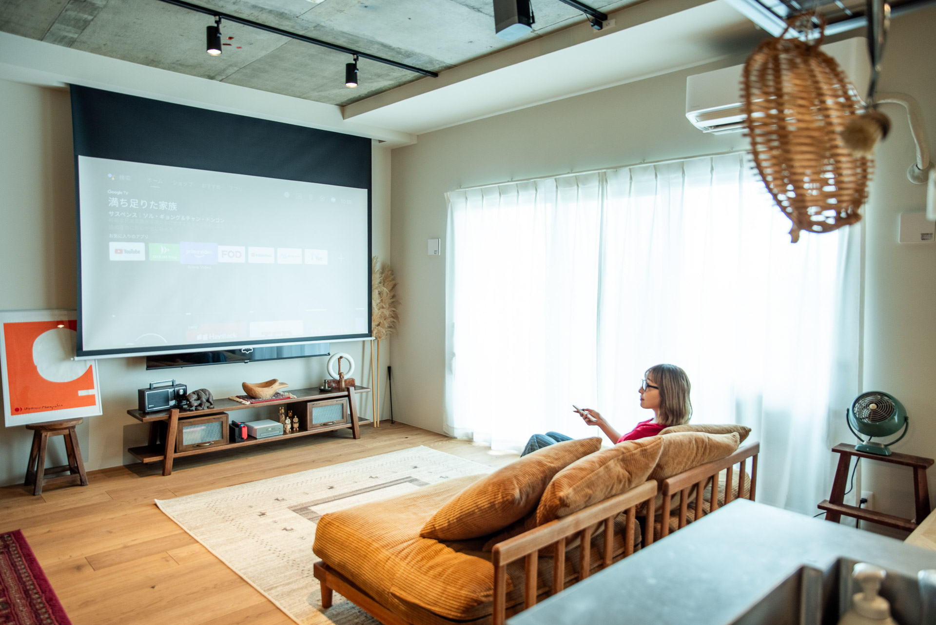 テレビは壁付で、配線すっきり。