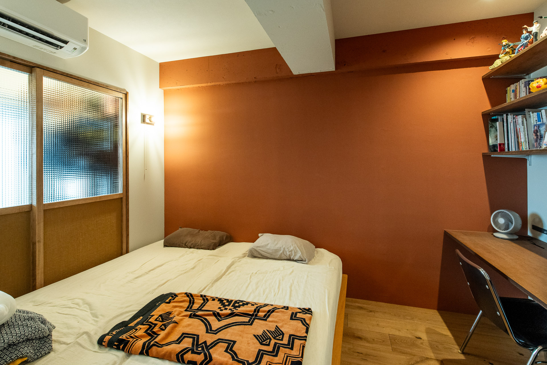 寝室の壁はアクセントカラーで塗装しました。