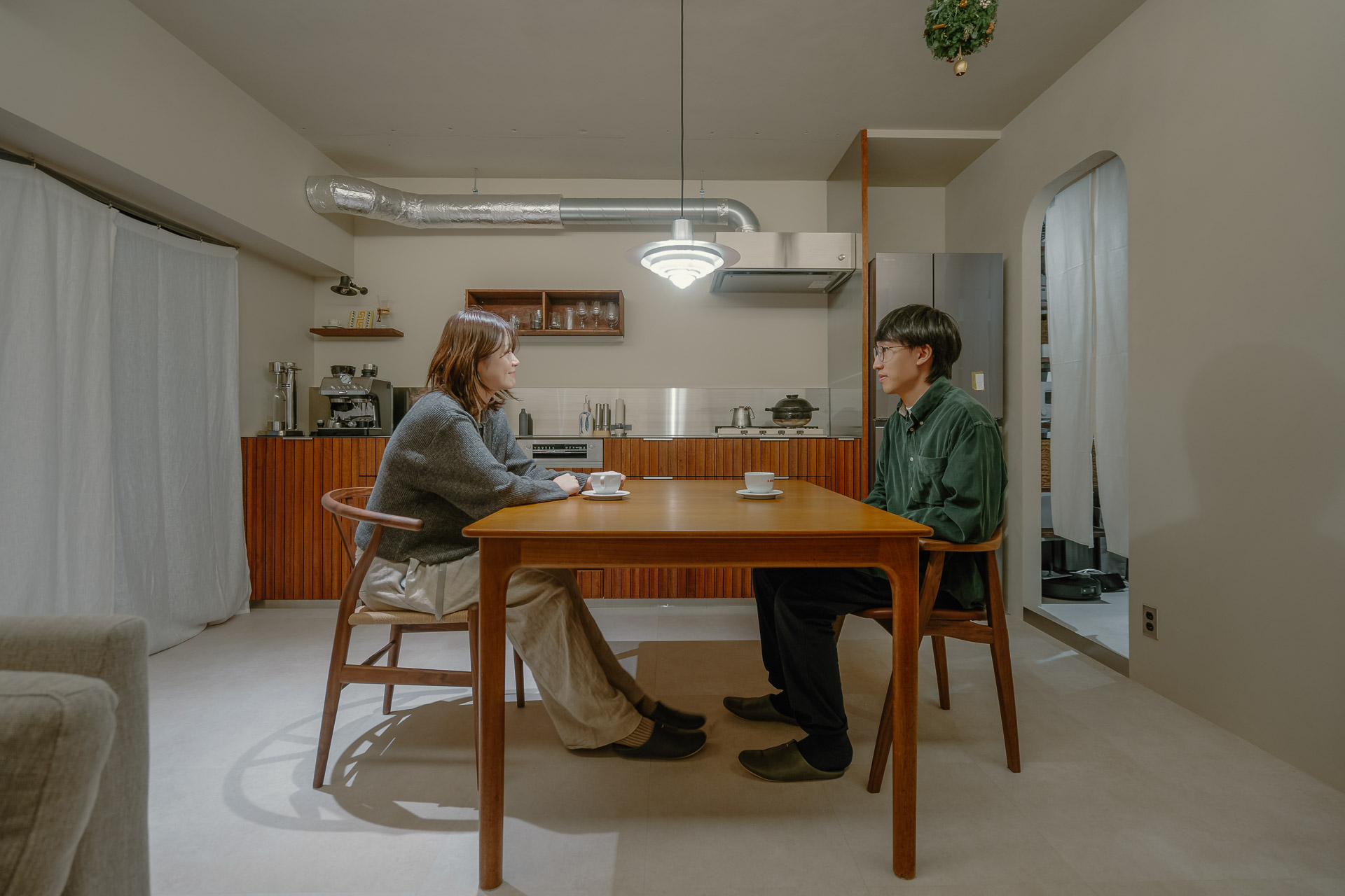 2人でコーヒーを飲む穏やかな時間、無理せず整う心地よい住まいです。