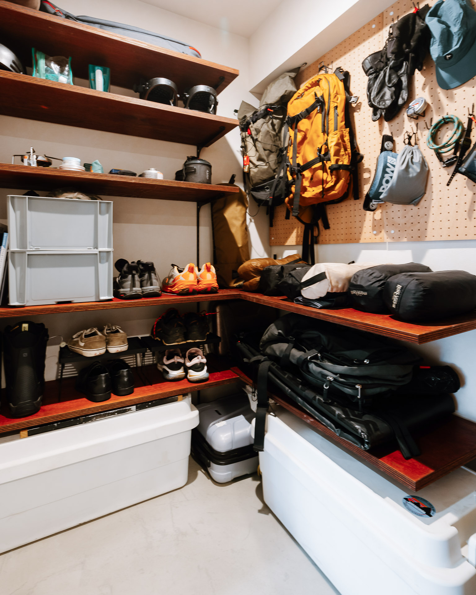 ・アウトドアギアをさっと片付けられる収納や、気分の上がるワークスペースが欲しい。