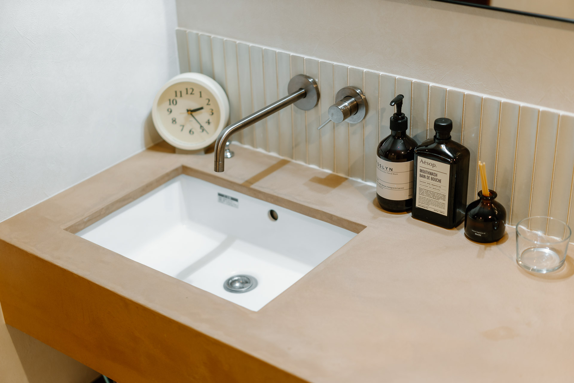 水掛かり部分は、リサイクル原料を使用した環境にやさしいタイル貼り。