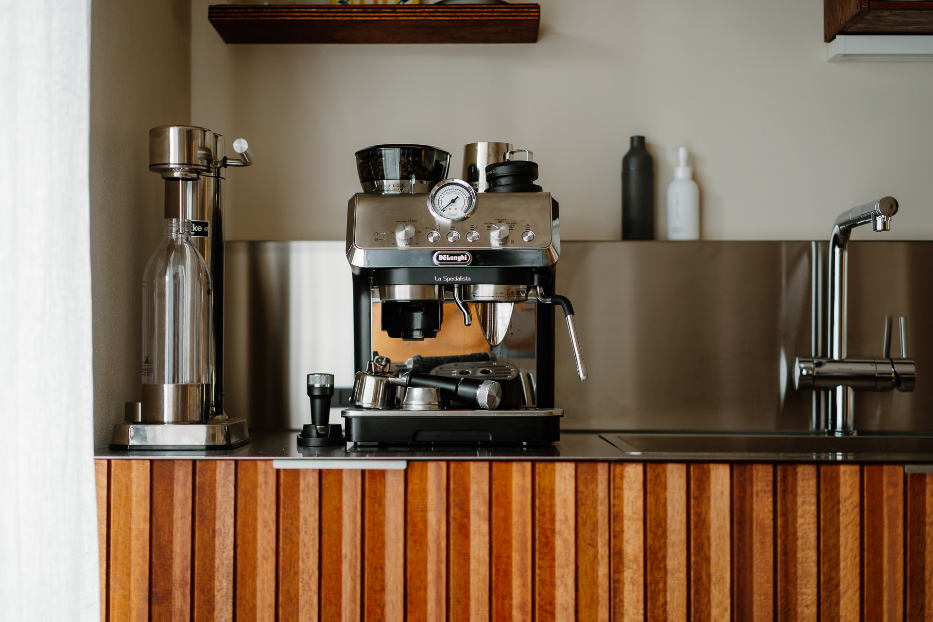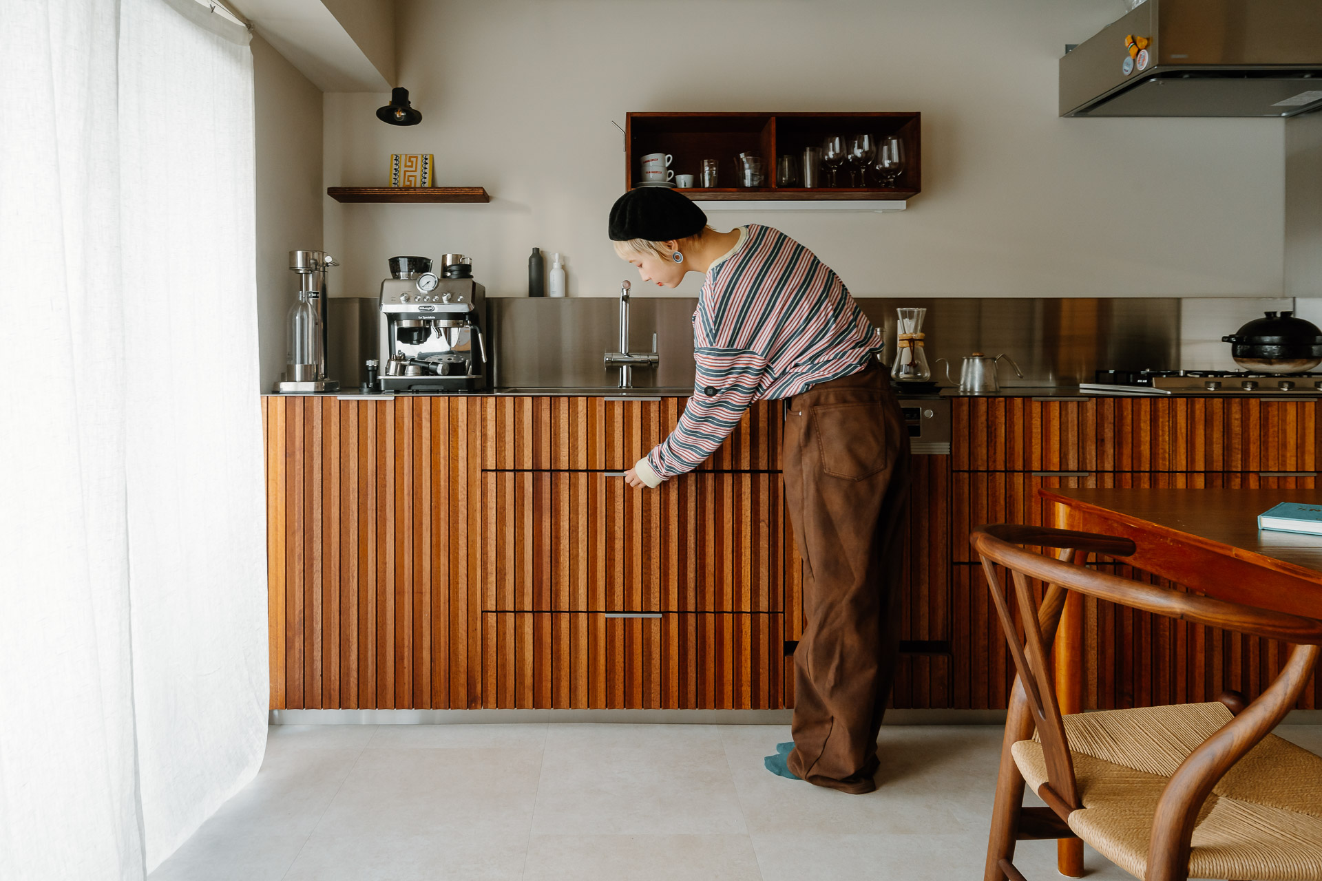 ウッドパネルは、ステンレス天板と相性の良いシャープな陰影を作り出す「エッジ」をセレクト。