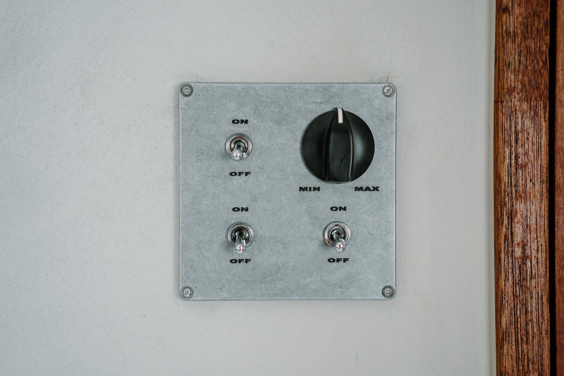LDKのスイッチは、インダストリアルな雰囲気のある調光付きトグルスイッチ。