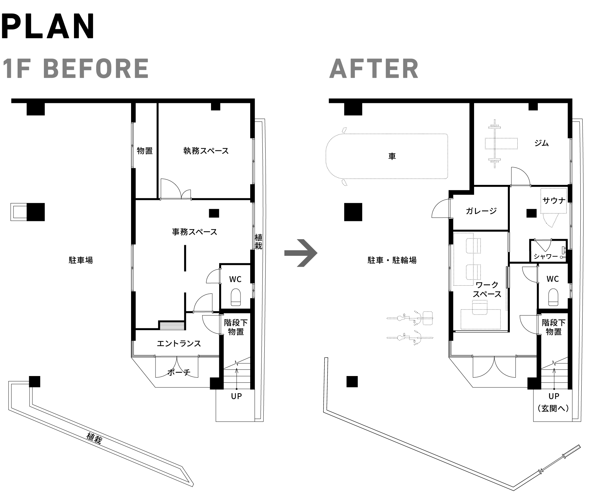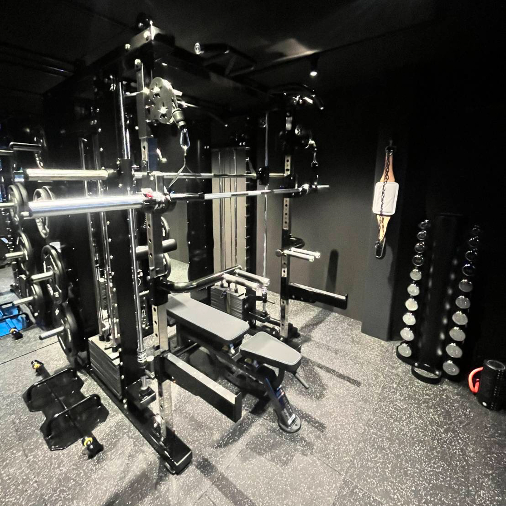それぞれ別の場所に通う大変さを解消すべく、1階をジム仕様に改修しました。