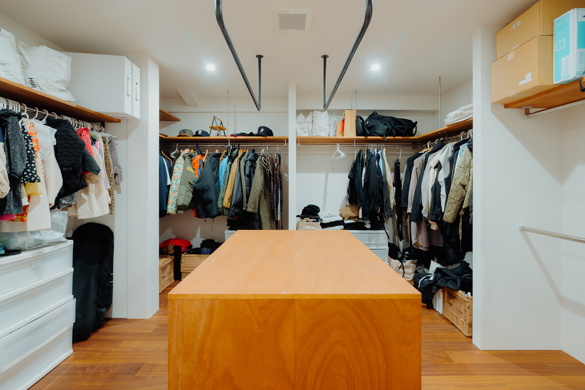 クローゼットは家族全員分をひとまとめにした、大きなWICを作りました。