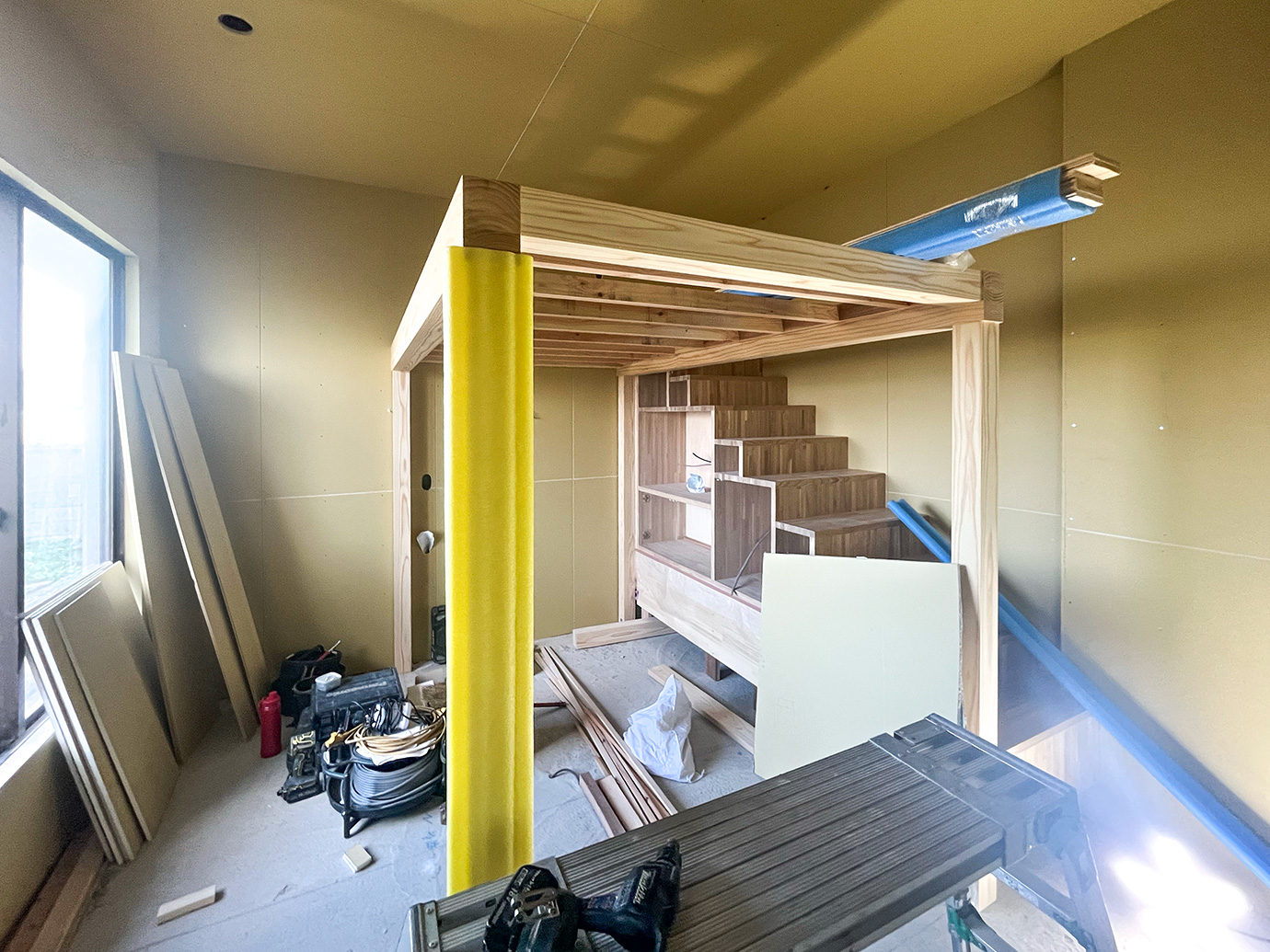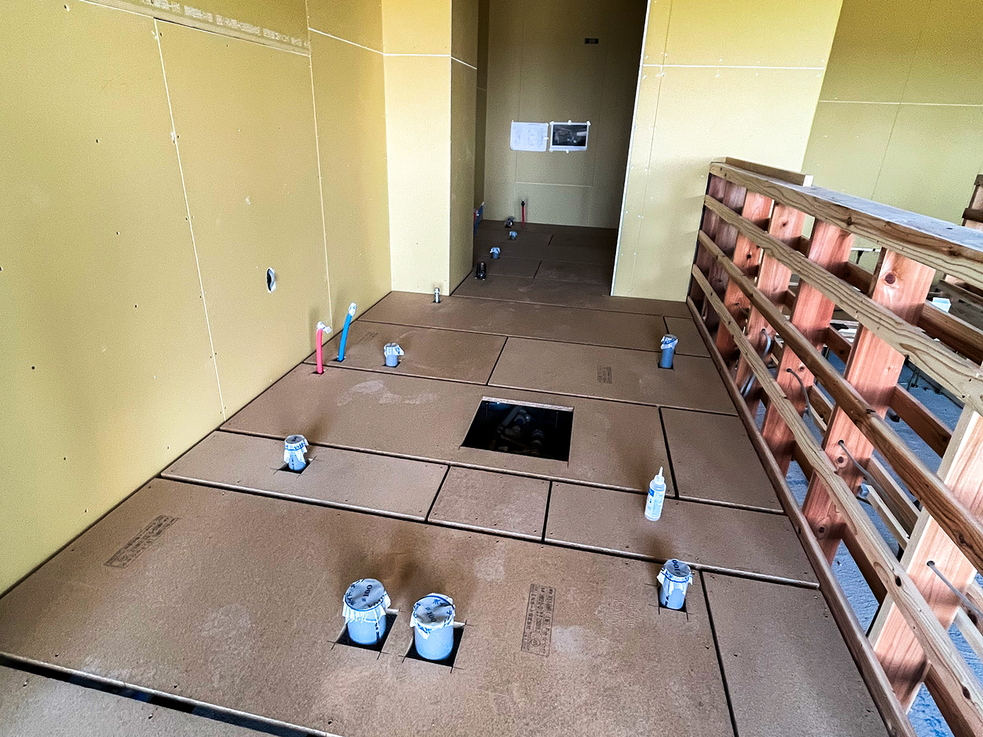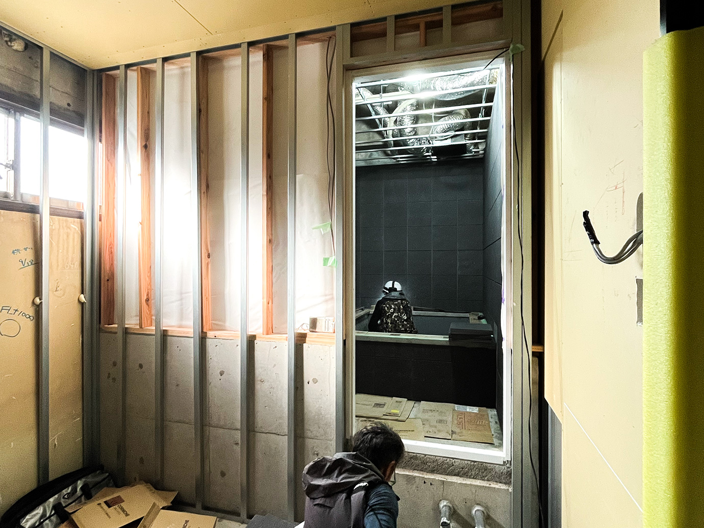普段のマンションリノベーションではあまり見ることのない配線の量が圧巻です。様々な業者様がとても綺麗に、かつ迅速に工事を進めてくれております。元々の建物…