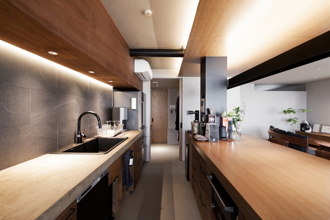 グレージュ色で仕上がっている空間にステンレスが良いアクセントに。