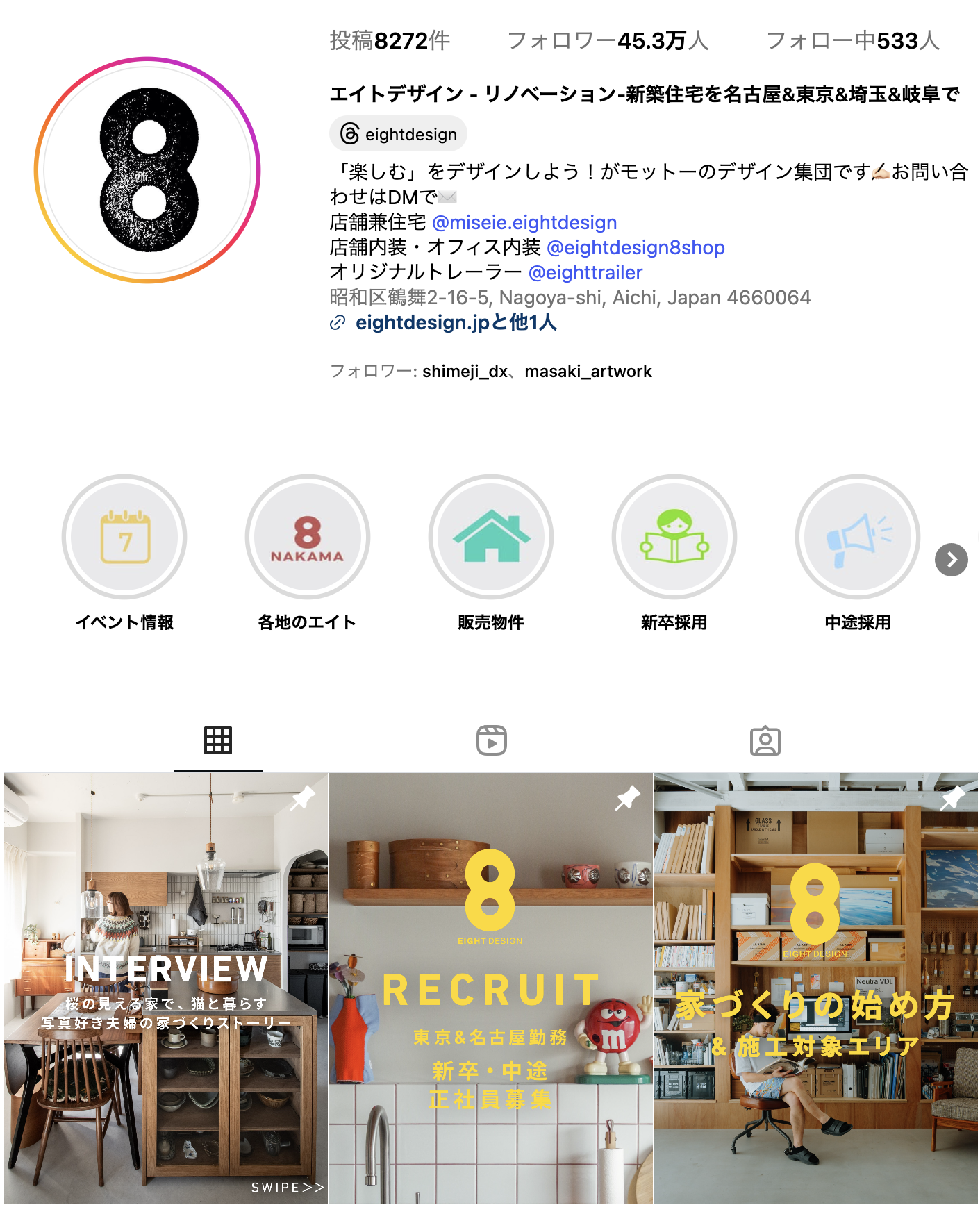 おかげさまで、エイトデザインのInstagramアカウントが45万フォロワーを突破しました!