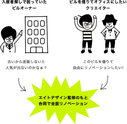 そこから、ビル一棟まるごとのリノベーションプロジェクトがはじまりました。