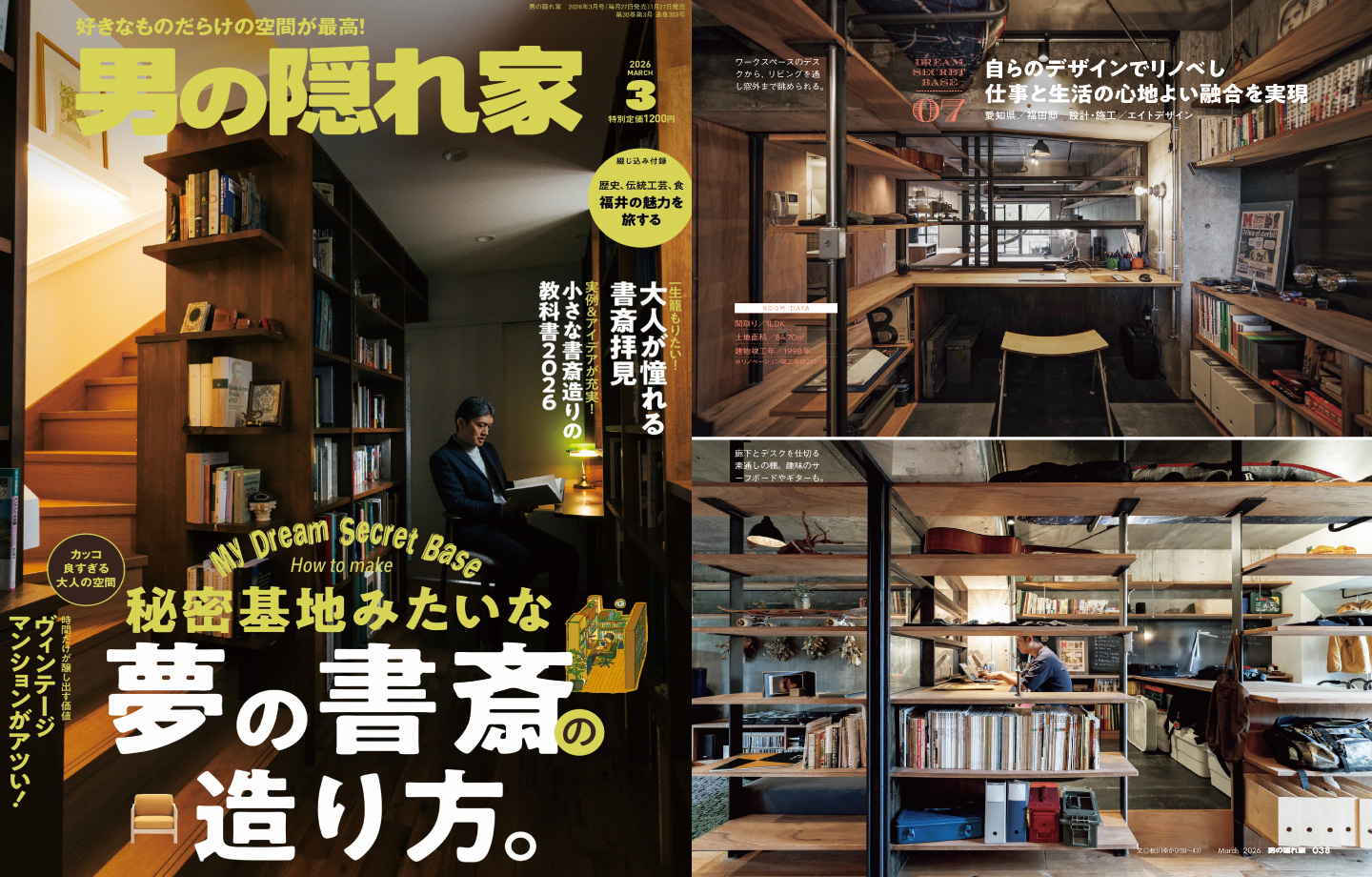 自分を大切にする趣味人へ多彩な空間を提示する「男の隠れ家」。 ”リノベーションで理想の空間を実現させる”小さな書斎造りの教科書2026の特集に、 エイトデザインが設計・施工を担当した、新築事例・マンションリノベーション事例が紹介されました。