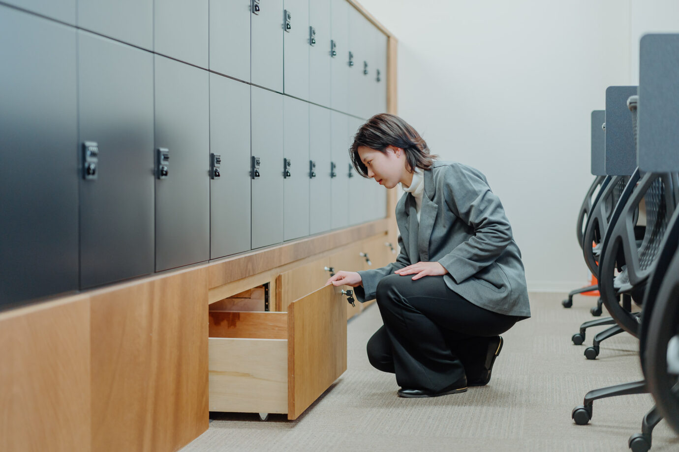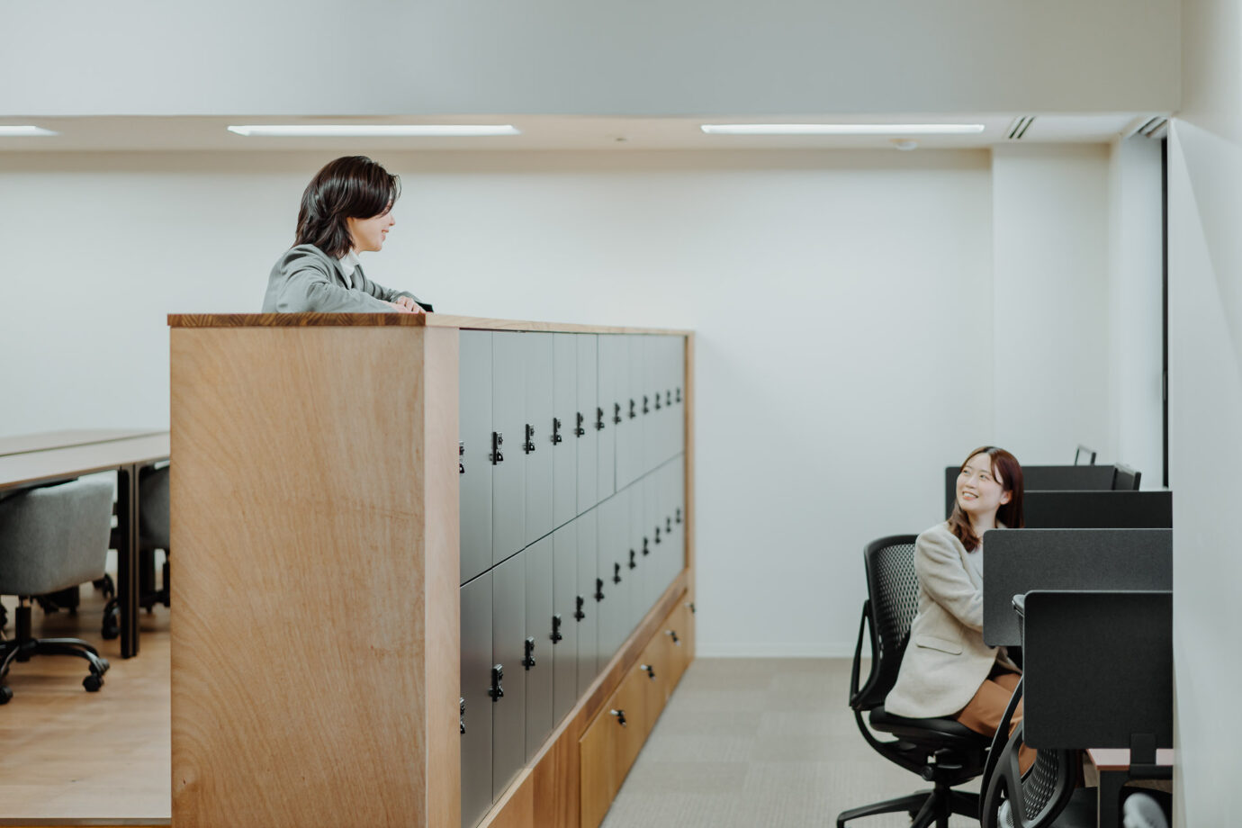 橋本:創業当初のオフィスが一軒家のようなところだったので、玄関で靴を脱いでスリッパで働く、というのが会社の文化として存在していたんです。何度かオフィスを移転しているんですけれど、出社したら下駄箱に靴をいれて内履きに履き替えるというのが通例として残っておりまして。今回それを廃止したんですけれども、大きめの個人ロッカーを採用したので、社内ではリラックスして過ごしたいなという人はこのまま続けてもいいし、これからは足元までオシャレするぞという人も居ていいと。自由に自分の意思で働き方を選ぶことができます。
